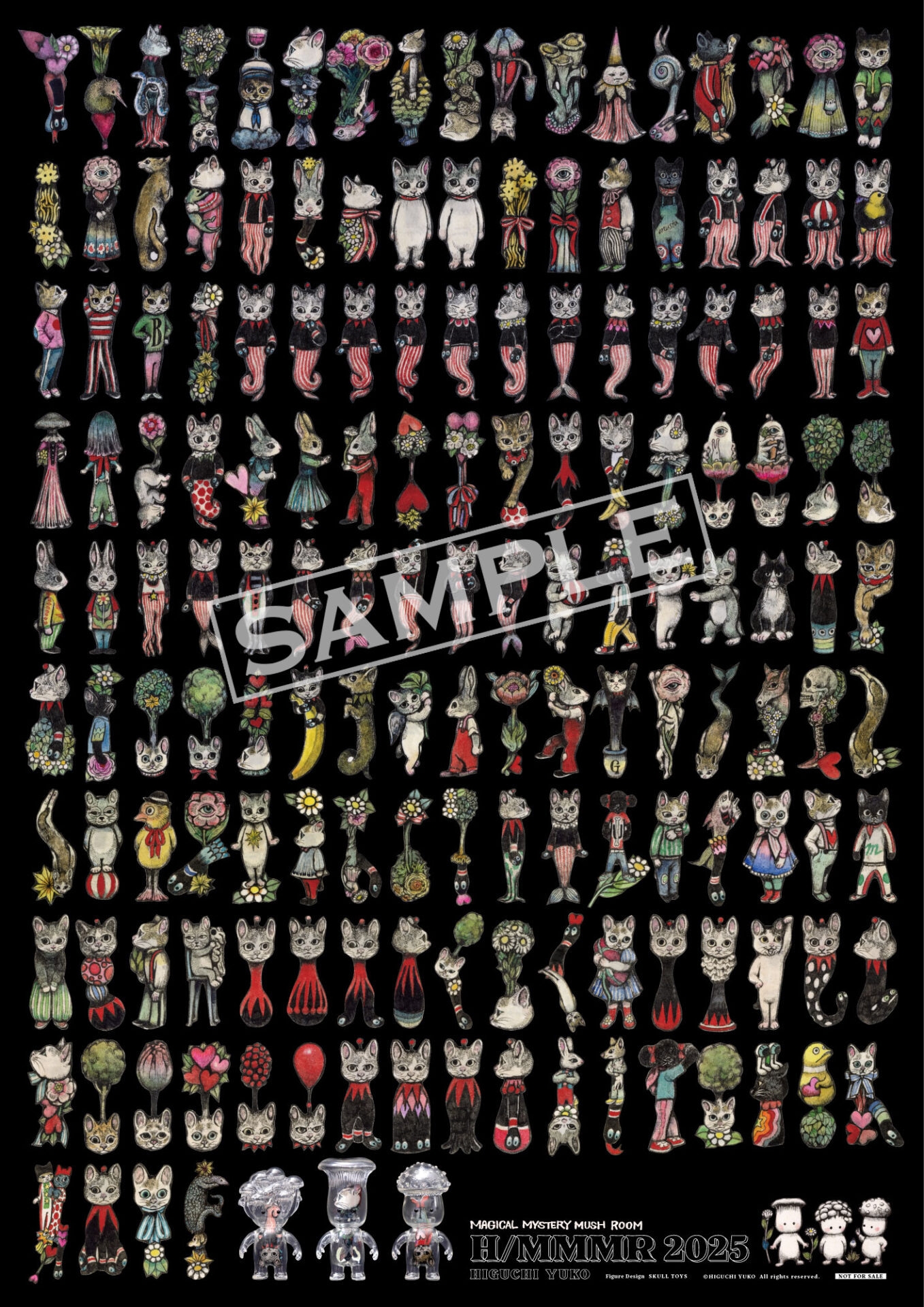 ポスターは、「SKULL TOYS DAILY SKETCH SHOW! 2025」でヒグチが制作したフィギュア作品「H/MMMR 2025」全157体に使用された原画をもとにデザインした、非売品のものです。